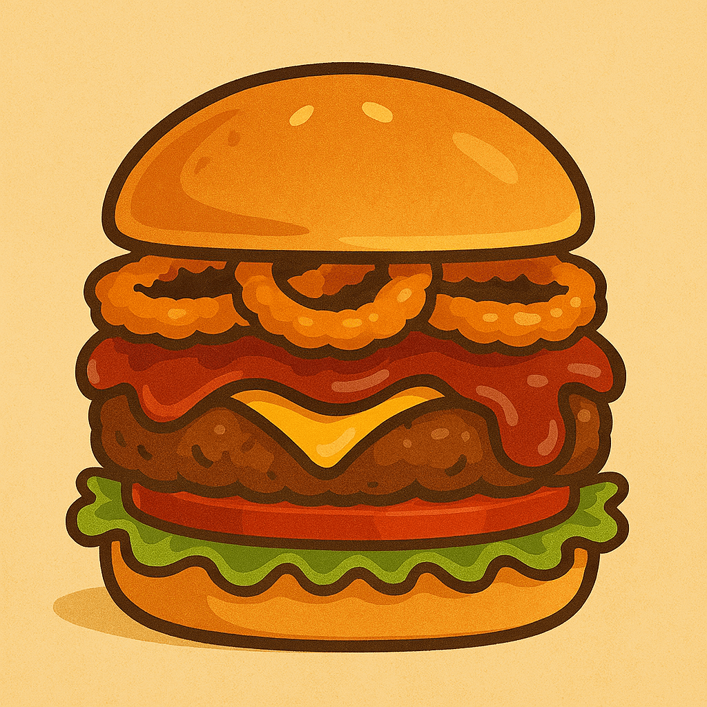 Smoky BBQ sauce, crispy onion rings, cheese delight.